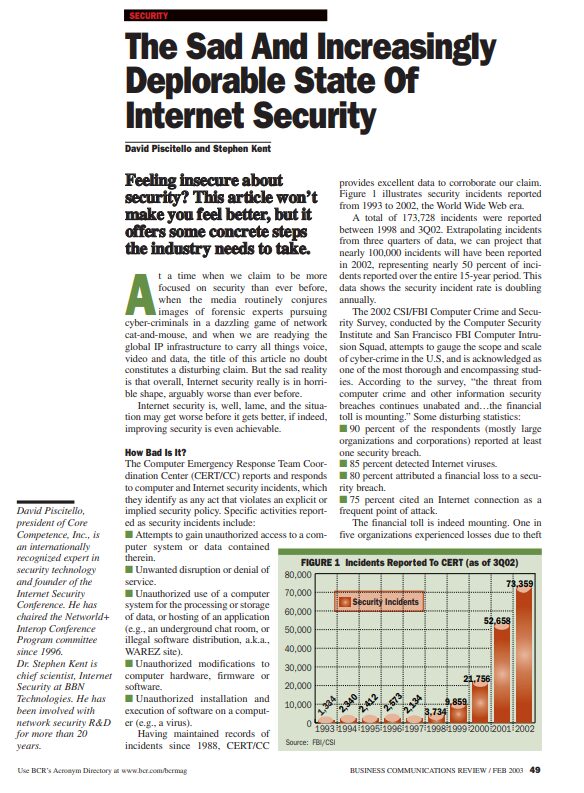 I came across an article colleague Stephen Kent and I wrote in 2003.